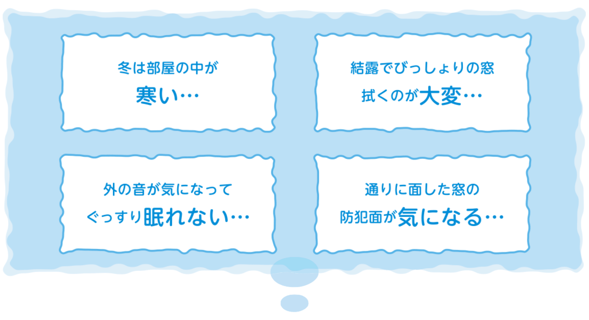 寒さ対策はもちろんですが、結露や外の音などのお悩みを、とても簡単なリフォームで解決できます。
